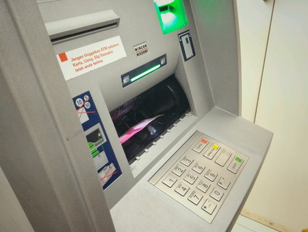 ATM machine with keypad and buttons.