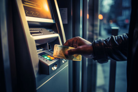 Customer takes cash from ATM. AI generated