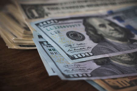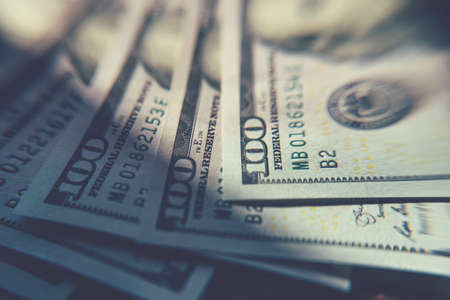 American cash dollars close-up. One Hundred Dollar Banknotes. Soft focus image.