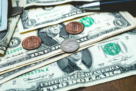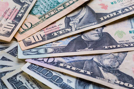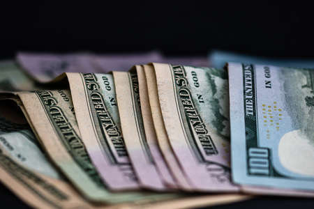Financial, banking or savings concept. Close up of US Dollar banknotes.