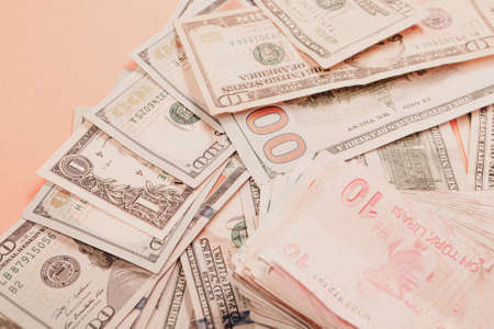 Close up photo of money, banknotes. Finance and currency composition. Concept of rich people, saving or spending money.