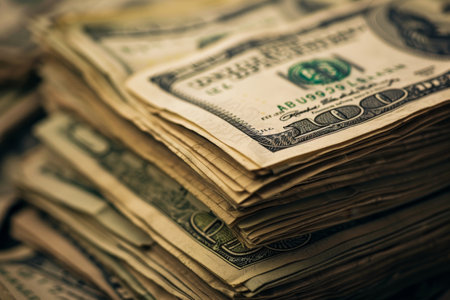 Close-up of stacked hundred-dollar bills, showing financial abundance, wealth, and investment potential.