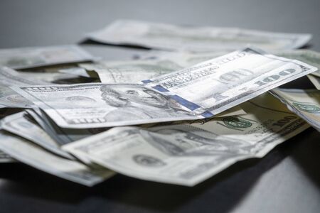 Close-up of one hundred dollar bills. Shallow depth of field.