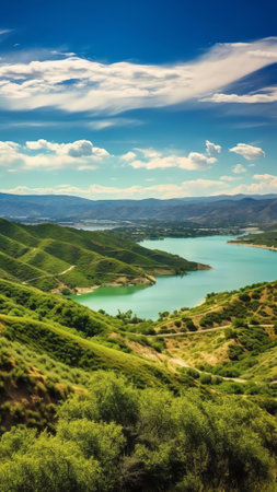 Generative AI : Panoramic aerial view of a river and lake Jordan river Sea of Galilee Israel
