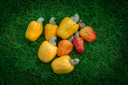 Close up of cashew fruit on the tree. Cashew fruit is a fruit that has a large size.