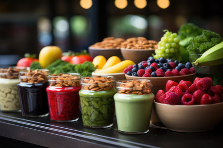 Smoothies bar full of fresh coffee ingredients., generative AI