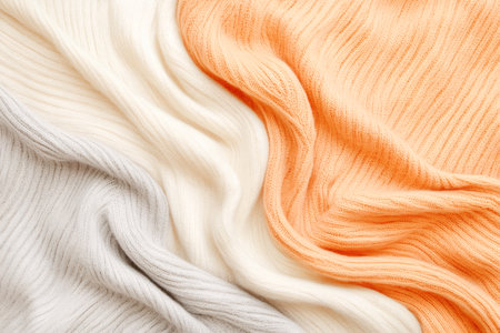Soft wool fabric showing a knitted texture pattern in white, grey, and peach pastel colors