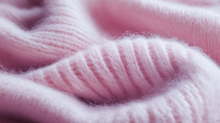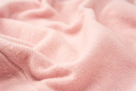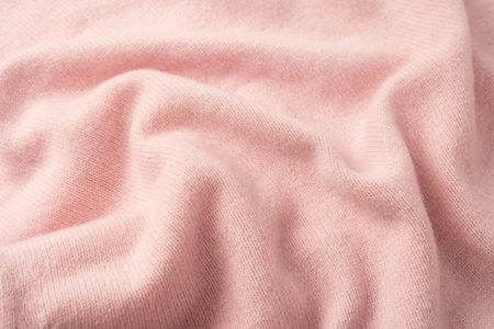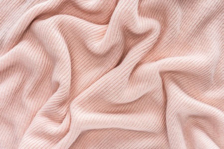 Soft pink cashmere sweater texture background. Top view.