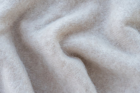 Macro shot highlighting the detailed pattern of a beige woolen knit fabric, evoking warmth