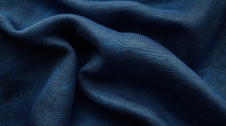 This deep navy blue fabric features a soft texture with subtle gradients that enhances its luxurious feel, making it perfect for upholstery, drapery, or fashion accessories.