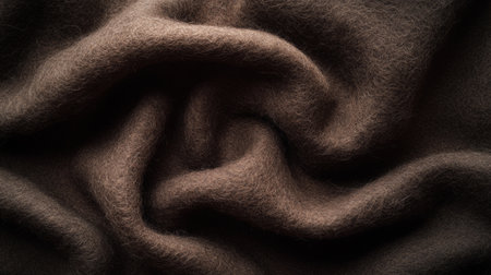 Dark brown wool felt material showcases a soft and fuzzy texture with intricate details. This close-up highlights the warmth and comfort of wool fabric.