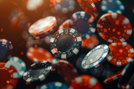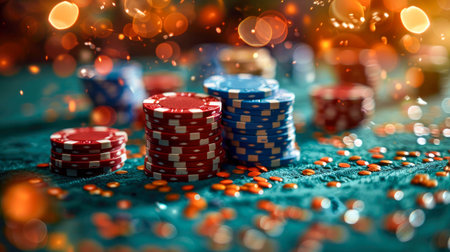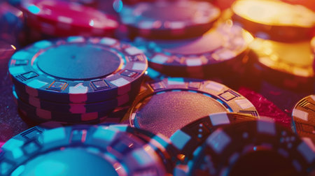 Vibrant Casino Chips with Blurred Bokeh Background in Warm Light