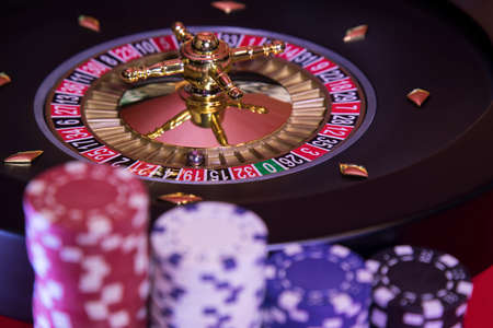 Roulette in casino and Poker Chips