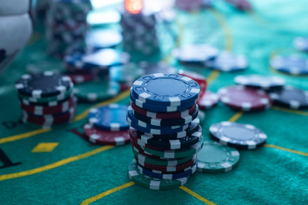 poker. playing chips are stacked as a bet