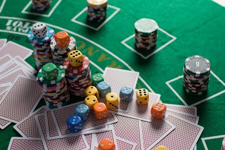 Dice ,Poker Chips Multicolor with a green background