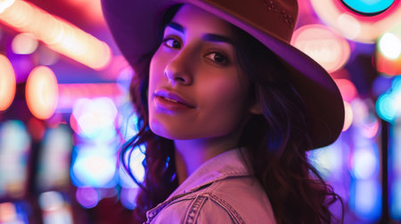 Glowing neon lights illuminate modern casino fun generated by artificial intelligence