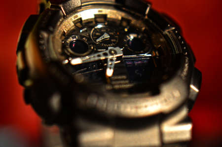 Quartz watch with a tachometer, close-up.