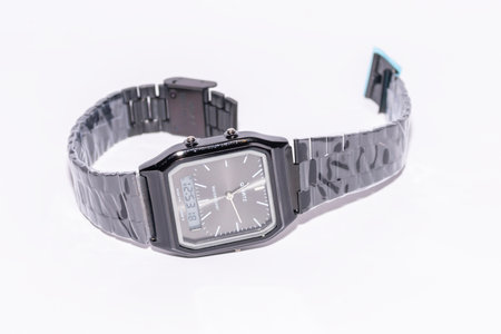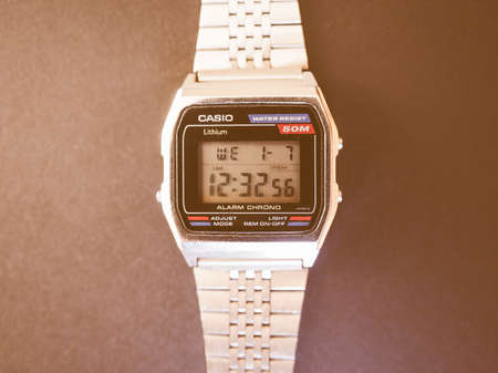 TOKYO, JAPAN - JANUARY 6, 2015: Digital Casio alarm chrono watch from the eighties vintage