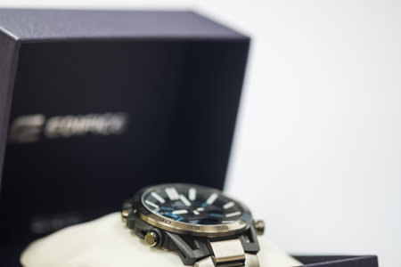 Bangkok, Thailand - April 13, 2023 : Luxury Watch Casio modern Men's Watch CASIO EDIFICE with box. Cloe up