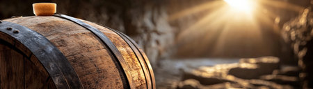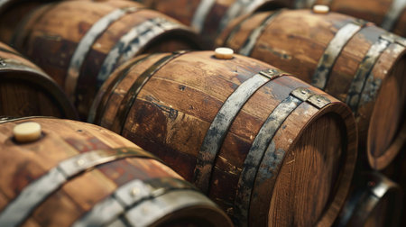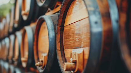 Background of aged oak wine barrels, evoking the ambiance of a vineyard