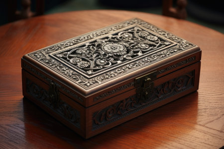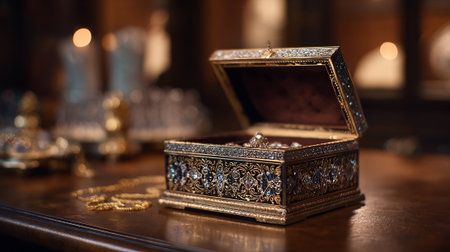 Discover the beauty of this antique ornate box featuring intricate designs and textures, perfect for enhancing any elegant or vintage-themed interior setting.