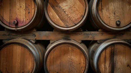 Background of aged oak wine barrels, evoking the ambiance of a vineyard