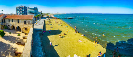 LARNACA, CYPRUS, AUGUST 15, 2017: People are enjoying a sunny day on Finikoudes promenade in Larnaca, Cyprus