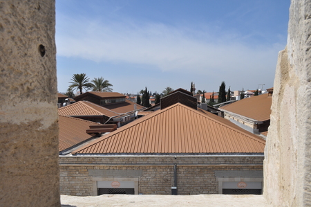 TEL AVIV, ISRAEL, SEPTEMBER 10, 2018: View of wooden houses of Sarona market in Tel Aviv, Israel