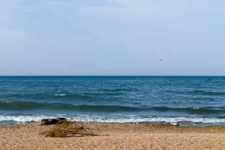 The shore of the Caspian Sea with shells. Dagestan. Russia