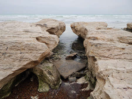 Rocky shore of the Caspian Sea. Mangistau region. Kazakhstan. Month of January.