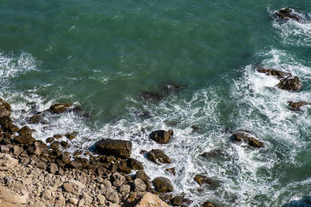 Downward view of the sea splashing on Cape Kaliara, Bulgaria.