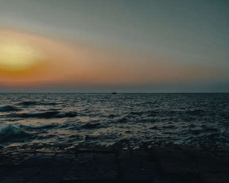 Colorful sky. seascape in the evening. Serenity nature background, outdoor at nighttime.