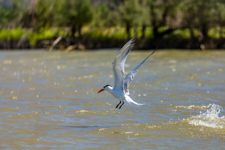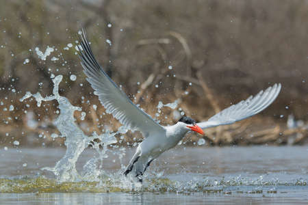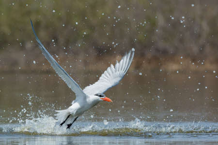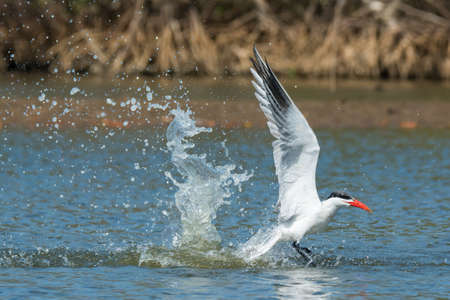 A Caspian Tern (Hydroprogne caspia) taking to the air after a dive