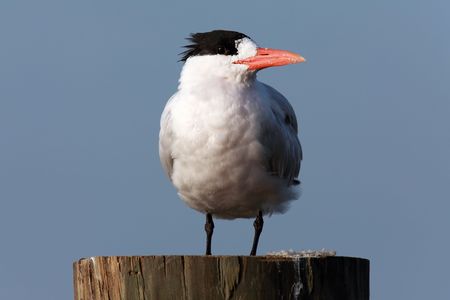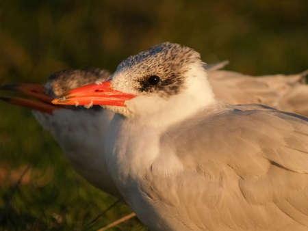 Young Caspian tern closeup in morning sun, Tauranga New Zealand.