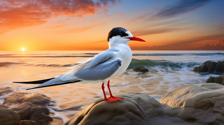 the tern, a majestic seabird, is beautifully captured in this stunning photo realistic image, showcasing its sleek grey and white feathers, sharp beak, and striking black cap, highlighting its elegance and agility as it soars above the ocean's waves, epitomizing freedom and coastal serenity. ai generated
