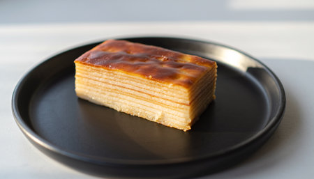 Malaysia popular and traditional dessert and snack on a Plate. Kuih Bingka Ubi or Baked Tapioca Cake