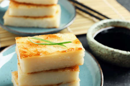 Wingko or Wingko Babat, a traditional Indonesian snack made from grated young coconut, glutinous rice flour, and sugar. Selected focus.