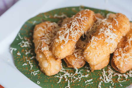 Fried cassava with cheese or singkong goreng keju, Indonesian traditional food.