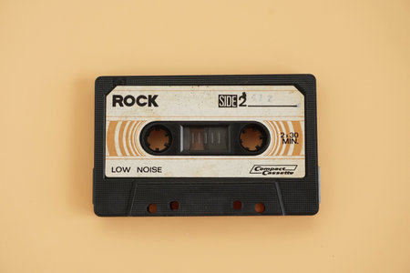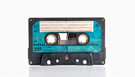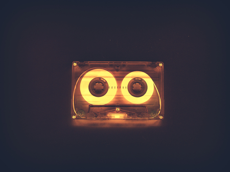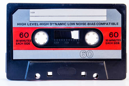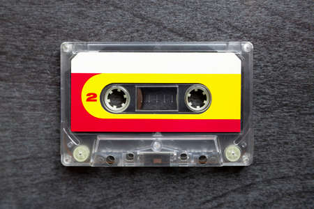 The vintage audio cassette tape, analog magnetic tape format for audio recording and playback.