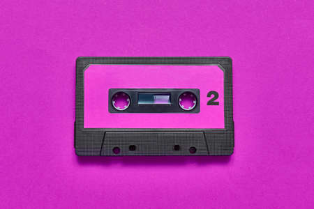 Retro music cassette on purple