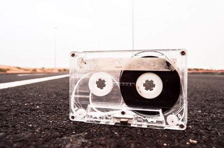 Ancient Retro Musicassette on the Asphalt Road
