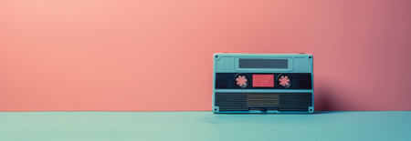Retro cassette tape on color background with copy space, AI Generated