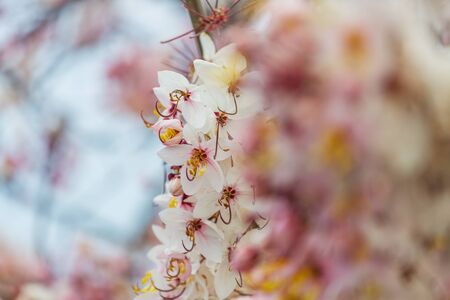 Lovely flowers of Cassia bakeriana Craib(Thai NameKalapaphruek,other Names Wishing Tree,Pink Shower,Pink cassia,Pink and White Shower Tree)