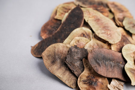 Macro Close-up of Dried Brown and Green Senna Leaflets (Senna alexandrina) Used as a Highly Effective Natural Laxative Ingredient.
