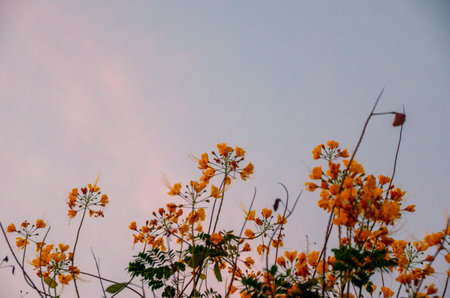 Yellow Peacock flower blooming in summer, vintage color style