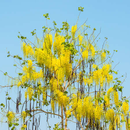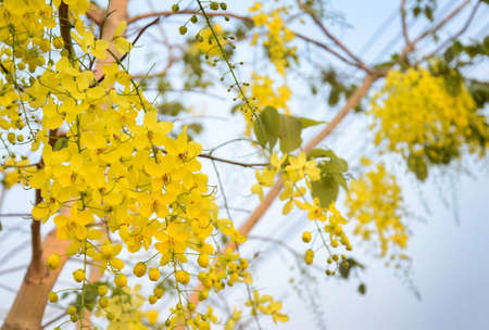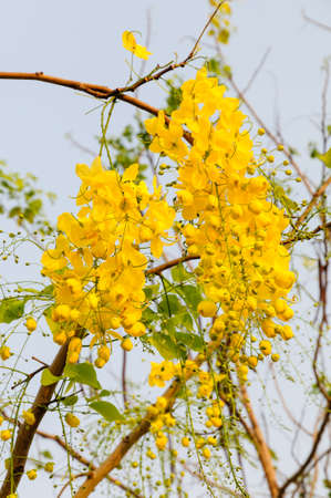 Flowers of Golden Shower Tree bloom in summer.