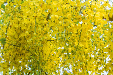 Ratchaphruek or Multiply flowers, Cassia fistula L. or golden shower are blooming on the tree. Tropical yellow flowers that bloom in summer. Symbol of Songkran Festival.