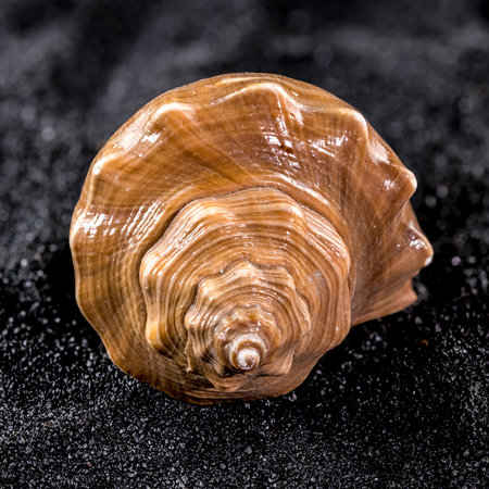 Close-up of Hemifusus Tuba sea shell on a black sand background