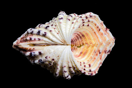 Isolated seashell on a dark backdrop. backdrop with ornamental sea shells