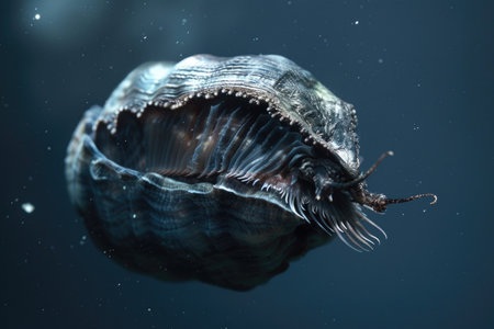 An ominous snapshot of a predatory mollusk lurking in the depths of the ocean
